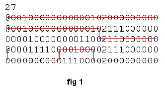 For each test case the first line contain an integer n (3 ≤ n ≤ 1000). In the follow 5 lines contain n characters, each character would be indicate the toll of this site and in the first columns the characters would be 0, or '@' that indicate the position of an alfalfa, there must be always be three '@'.